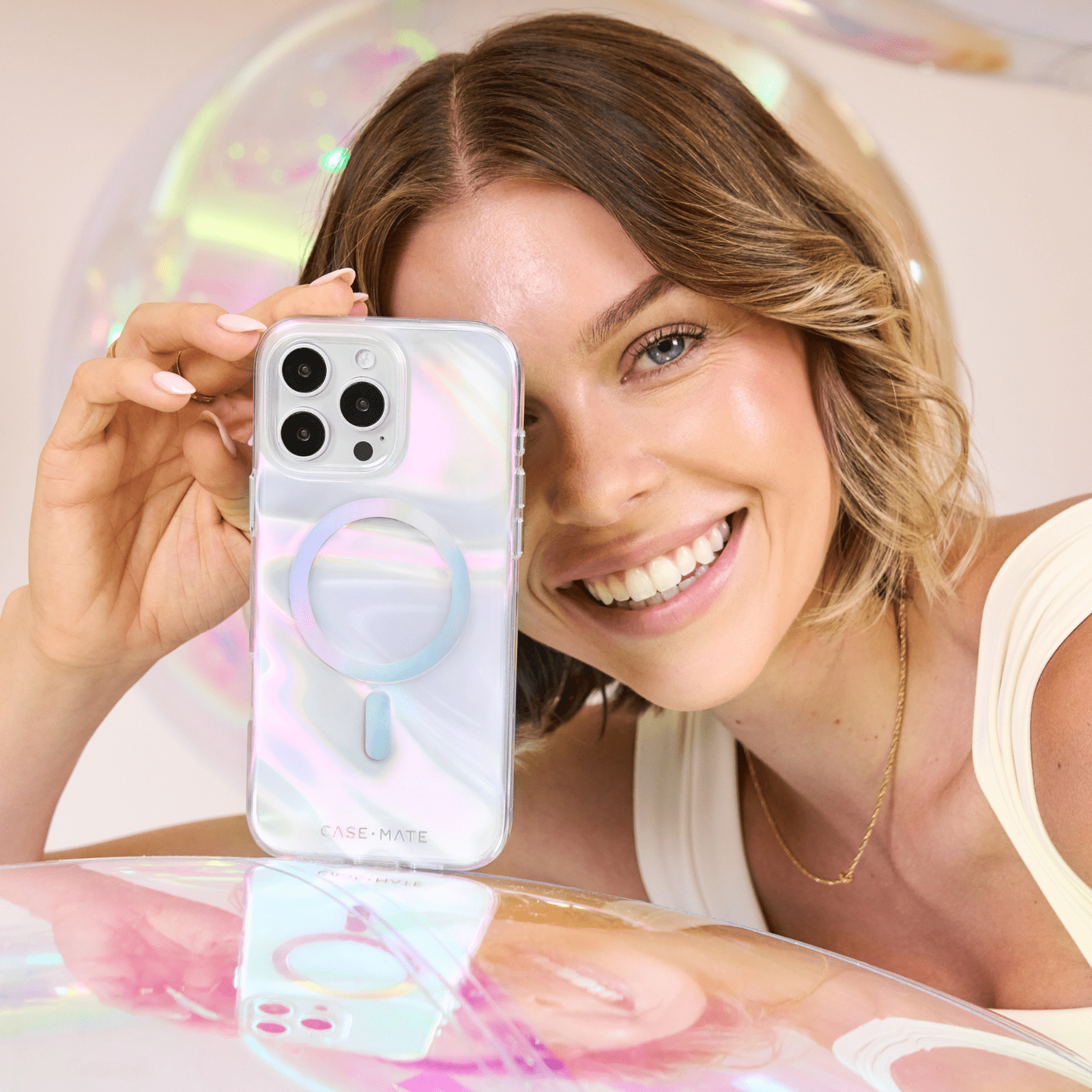 Make your unique style pop with the Soap Bubble MagSafe Phone Case for the iPhone 16! This irresistible, iridescent design changes hues with every move you make. We know how much you love your phone, so feel confident knowing it’s safe with 12-foot drop protection while strong built-in magnets allow for easy MagSafe accessorizing and charging.